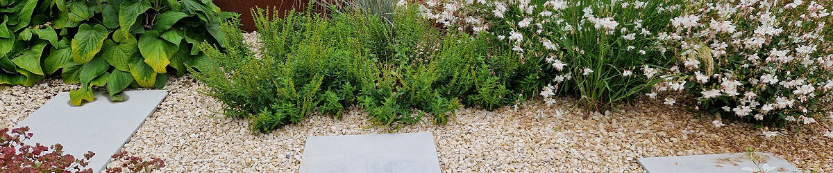 Trockene Kies- und Schotterflächen sind Standorte für Pflanzen, die nicht oder nur sehr wenig gegossen werden müssen und damit helfen, den Wasserverbrauch für den Garten / die Grünfläche zu reduzieren.