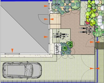 - Berlin-Niederschönhausen mit einer Vielzahl an Funktionen im schmalen Vorgarten, Hanggrundstück mit Terrasse und Treppenstufen und Pfaden zum Garten