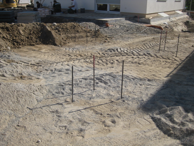 Vom ersten Gespräch bis zur Fertigstellung des Gartens vergingen eineinhalb Jahre. Im Planungsprozess wurden mehrere Varianten abgewogen, sollten doch auf relativ wenig Raum recht viele Elemente (Terrasse, Sitzplatz, Brunnen, Hochbeet, Mauern, Stauden- und Gräserbeete, Hecken, Gehölze, Pergola, Obstbäume, Weg, Treppe, Stellfläche) im Garten enthalten sein. Eine Landschaftsbaufirma stellte im Spätsommer 2013 den Garten fertig und die Familie konnte die ersten Himbeeren ernten und sich am fertig bepflanzten Garten erfreuen.